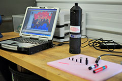 Acoustic telemetry tags (on pink foam), receiver, and software. Photo: A. Miehls, GLFC